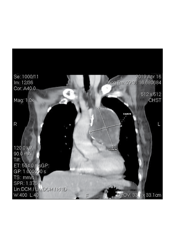 Tại Bệnh viện Medic Bình Dương, bệnh nhân đã được Bác sĩ chuyên khoa thăm khám và chỉ định đi chụp X- Quang ngực thẳng. Sau khi có kết quả, Bác sĩ nghi ngờ có dấu hiệu bất thường ở trung thất, đã hội chẩn và cho chỉ định chụp CT cắt lớp vi tính Lồng ngực kỹ thuật cao với máy CT Scanner 32 lát của hãng GE Mỹ 2017