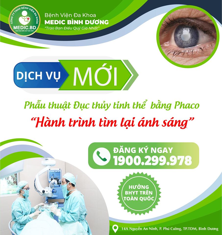 Bệnh đục thủy tinh thể là một bệnh nguy hiểm, vì thế cần chữa trị kịp thời. Cho đến nay các thuốc tổng hợp rất khó có thể làm trong thủy tinh thể trở lại. Hiện nay phương pháp điều trị đục thủy tinh thể hiệu quả nhất vẫn là phẫu thuật. Tại bệnh viện đa khoa Medic Bình Dương, 2 phương pháp hiện đại nhất đã được áp dụng: lấy thể thủy tinh ngoài bao và phẫu thuật thể thủy tinh bằng Phaco.