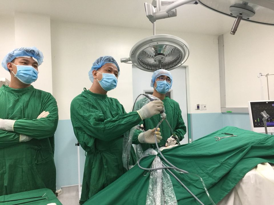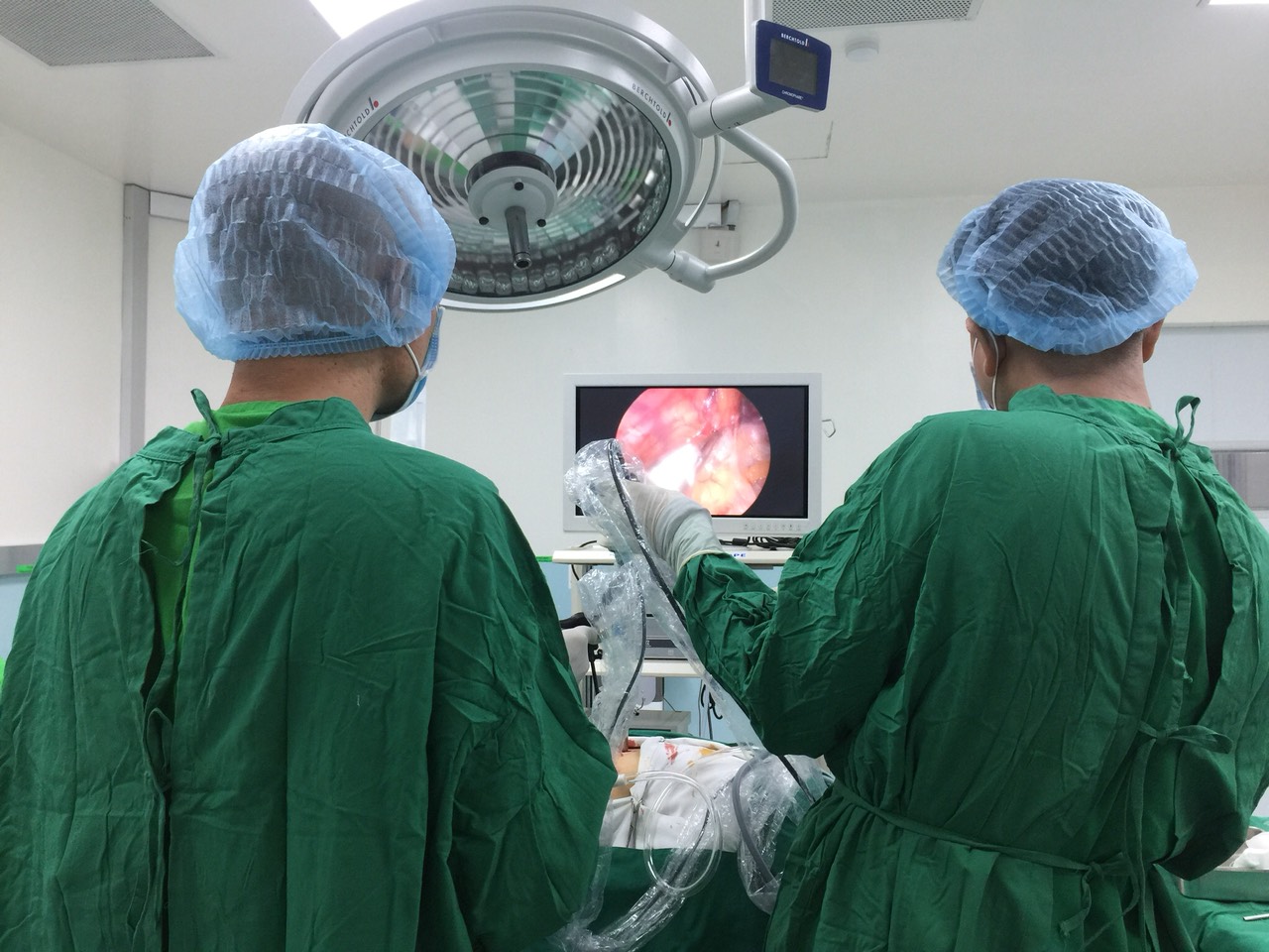 Trước đó, cô P. nhập viện trong tình trạng đau tức hông, lưng, khó tiểu. Qua thăm khám, kết hợp với kết quả siêu âm, chụp CT, các bác sĩ khoa Ngoại đã chẩn đoán bệnh nhân bị sỏi san hô thận trái kích thước lớn gây biến chứng giãn đài bể thận, khiến thận bị ứ nước và được chỉ định phẫu thuật lấy toàn bộ sỏi ra ngoài. Tuy nhiên, ca phẫu thuật có thể gặp nhiều khó khăn và rủi ro do cô P. có tiền sử tăng huyết áp và tiểu đường.