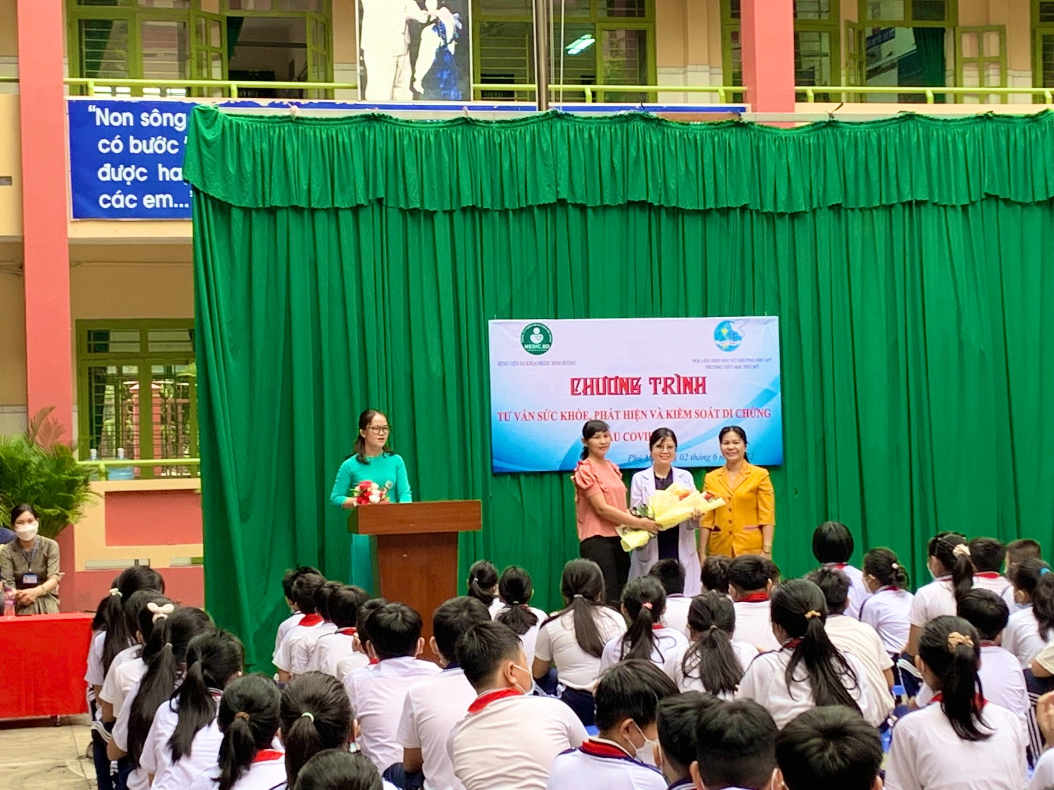 Sáng nay ngày 02/06/2022, Bệnh viện đa khoa Medic Bình Dương đồng hành cùng Trường Tiểu Học Phú Mỹ (Thủ Dầu Một, Bình Dương) Tư vấn sức khỏe, Phát hiện và Kiểm soát Di Chứng Hậu Covid cho các em học sinh lớp 5 và Quý thầy cô..