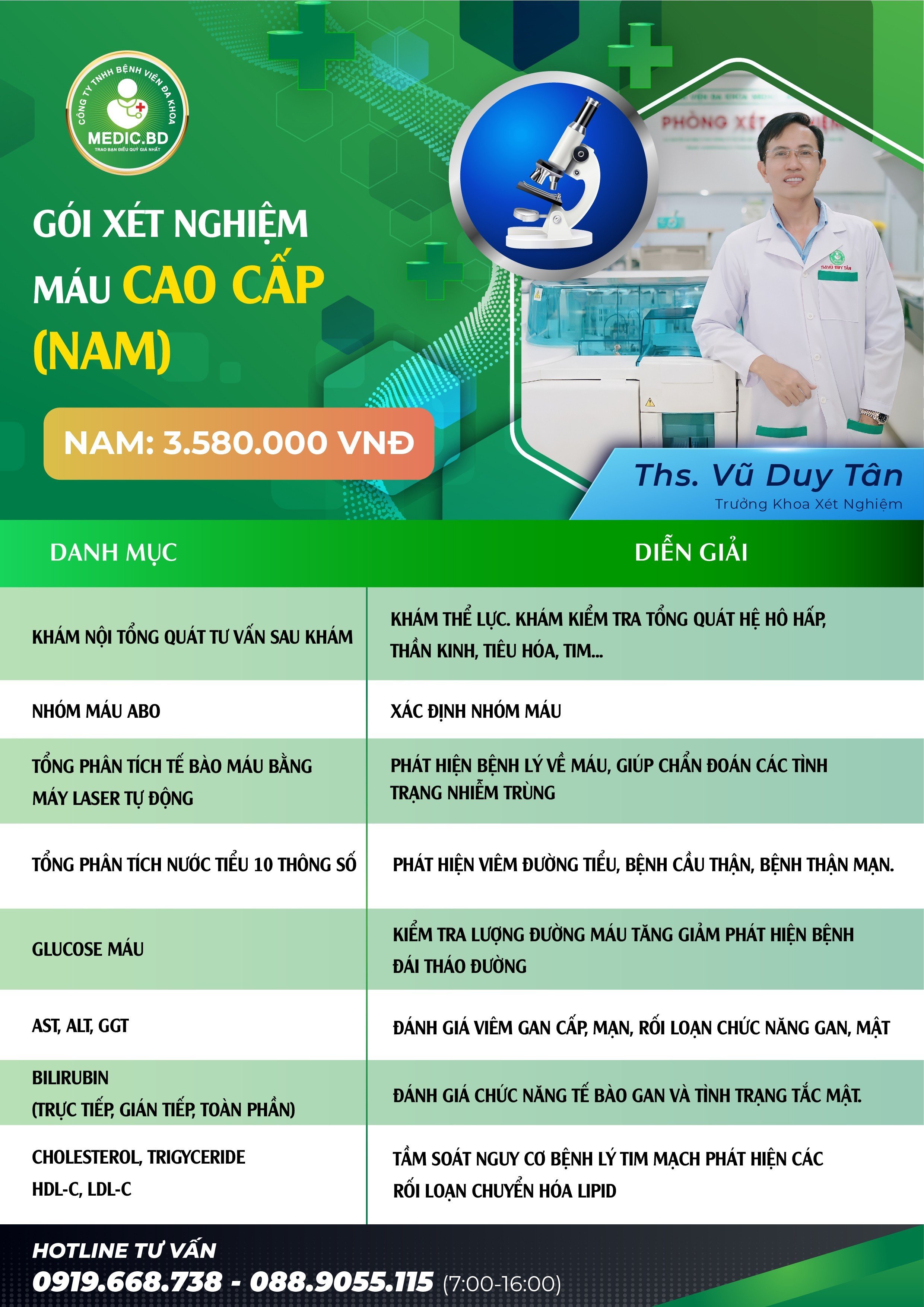 XÉT NGHIỆM MÁU TỔNG QUÁT DÀNH CHO NAM GỒM NHỮNG GÌ?