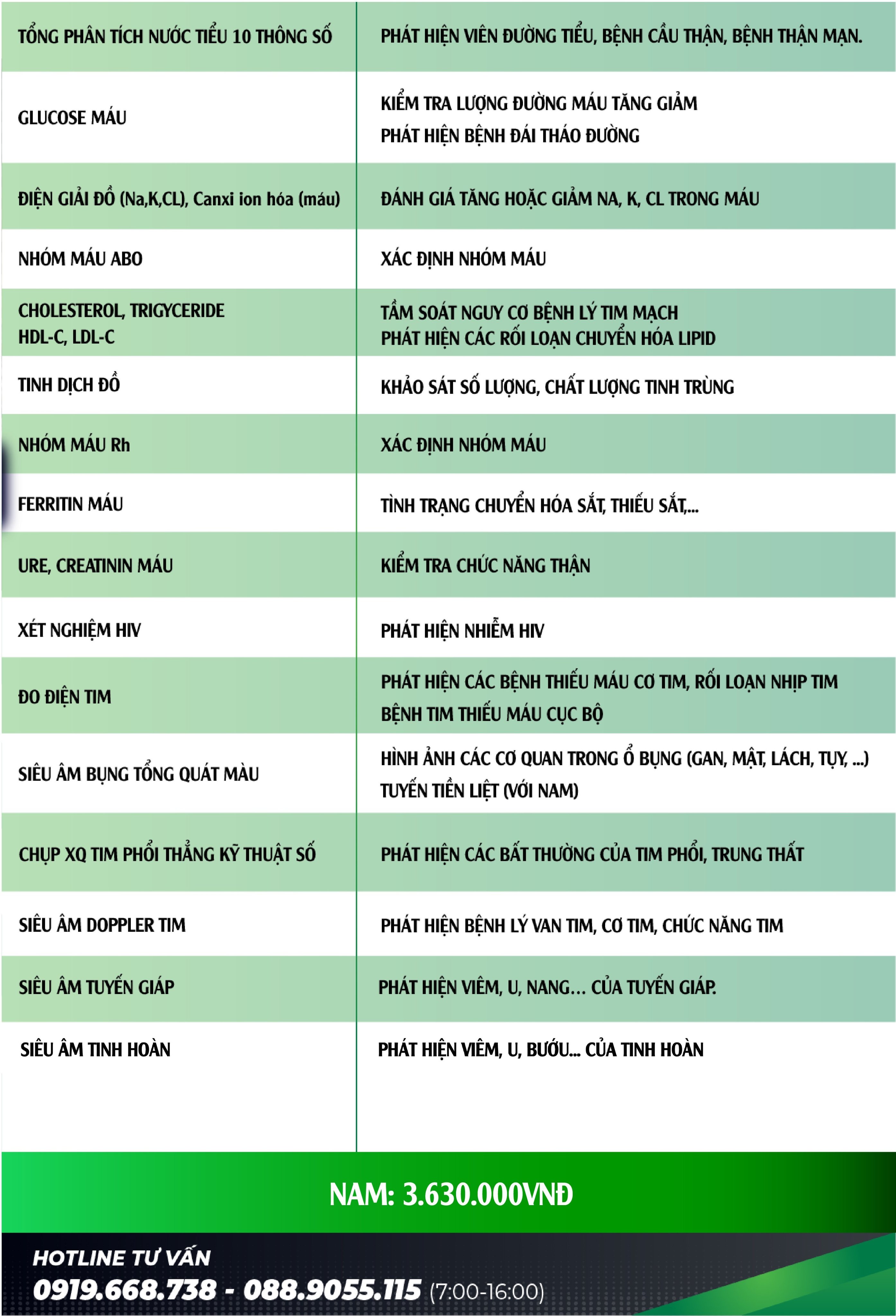 DỊCH VỤ GÓI KHÁM SỨC KHỎE TÌNH YÊU (TIỀN HÔN NHÂN) DÀNH CHO NAM GIỚI GỒM NHỮNG GÌ?