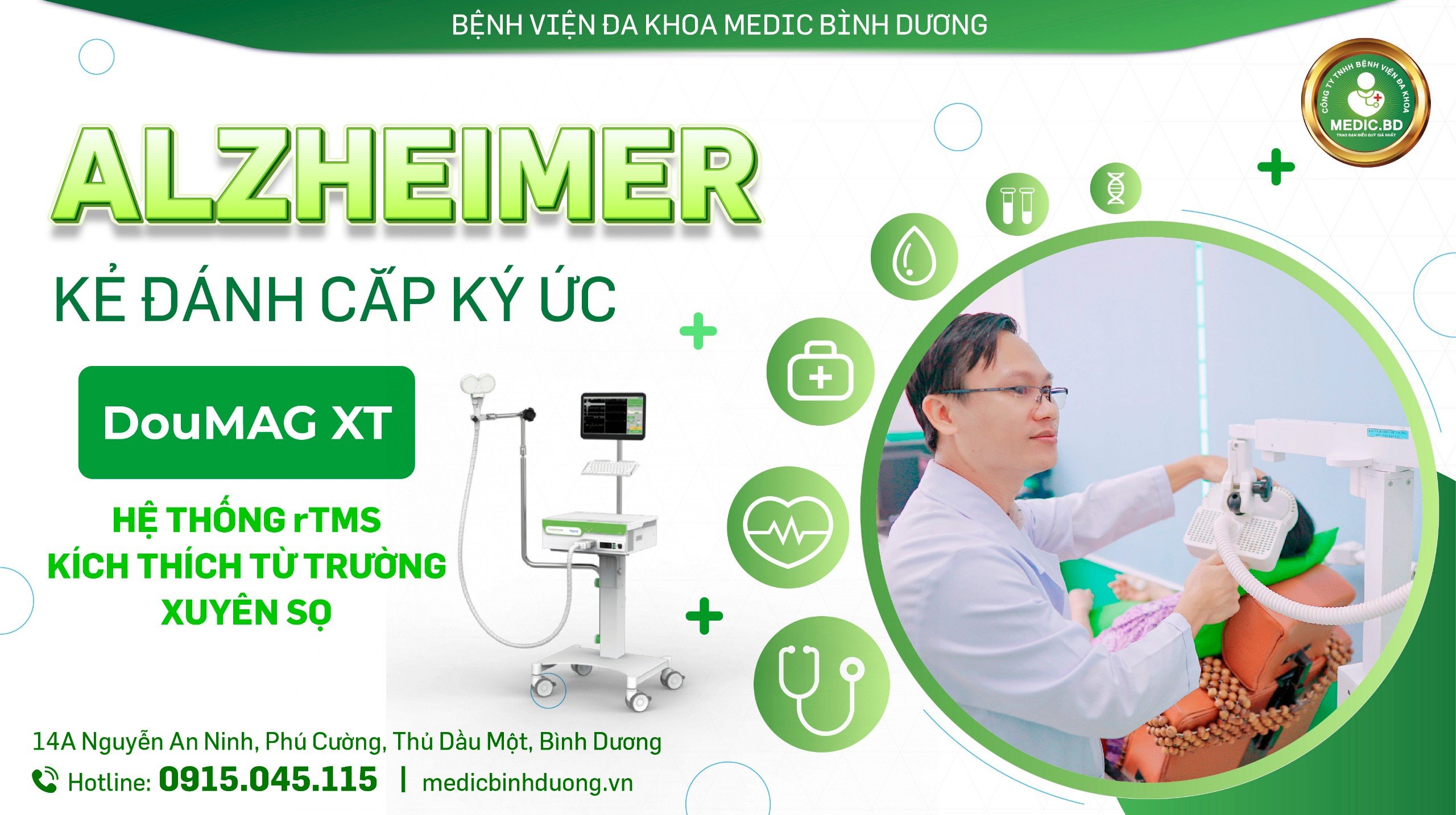 Bệnh viện Đa khoa Medic Bình Dương quy tụ đội ngũ chuyên gia hàng đầu là các giáo sư đầu ngành, bác sĩ giàu kinh nghiệm trong lĩnh vực thần kinh. Bên cạnh đó, với hệ thống trang thiết bị hiện đại và áp dụng các kỹ thuật tiên tiến trong chẩn đoán và điều trị thành công cho các bệnh nhân mắc các bệnh lý thần kinh như: đau nửa đầu, đau đầu mạn tính, tai biến mạch máu não, rối loạn giấc ngủ, sa sút trí tuệ, Alzheimer, động kinh, Parkinson,… Để đặt lịch thăm khám và điều trị, liên hệ qua số hotline: 0915.045.115 hoặc truy cập website https://medicbinhduong.vn/ để được tư vấn.