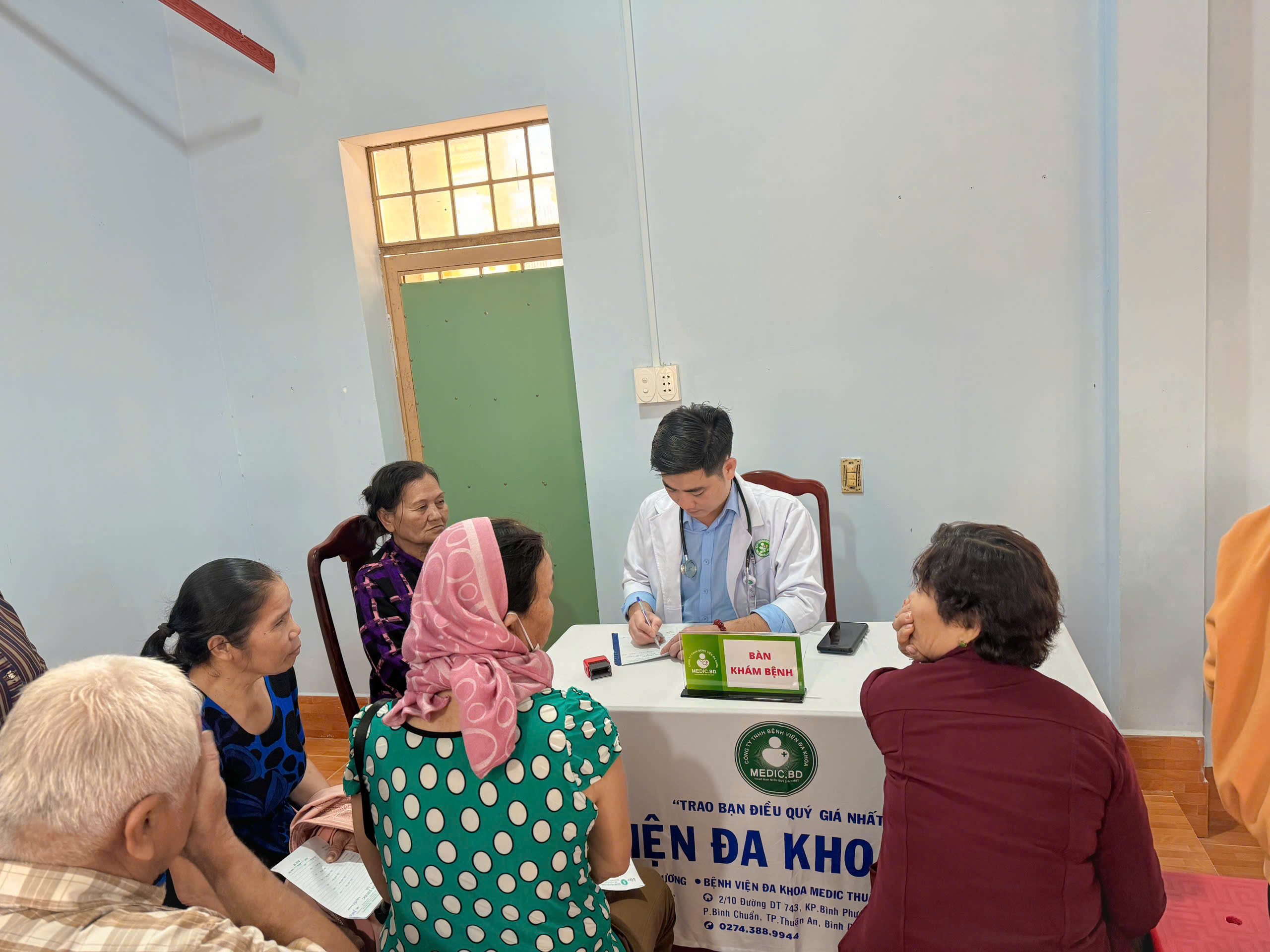 Vượt quãng đường hơn 100km, đoàn y bác sĩ của Bệnh viện đa khoa Medic Bình Dương đã tổ chức khám chữa bệnh, phát thuốc miễn phí và trao tặng kính lão cho 200 người dân. Mặc dù hành trình khá vất vả, nhưng các thành viên trong đoàn luôn giữ tinh thần nhiệt huyết, nỗ lực mang đến sự chăm sóc tận tình và niềm vui cho bà con. Với phương châm "Trao cho bạn điều quý giá nhất" và "Trao đi là còn mãi", bệnh viện mong muốn lan tỏa tinh thần nhân ái, sẻ chia đến cộng đồng.
