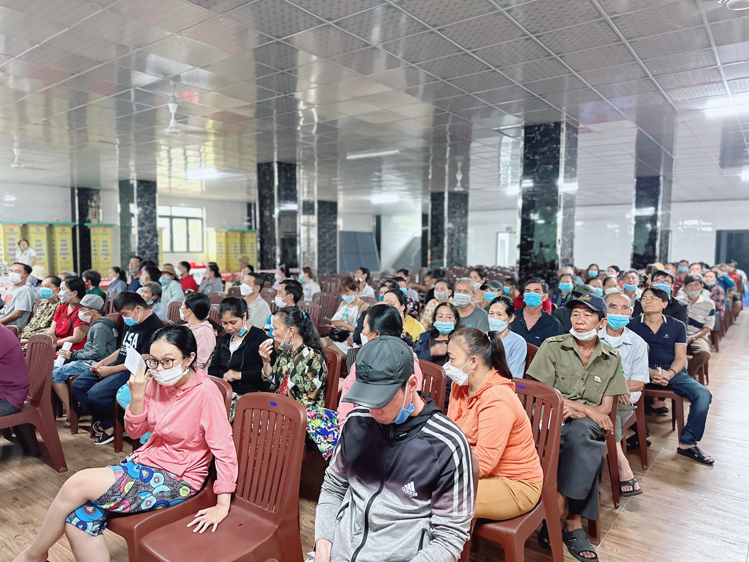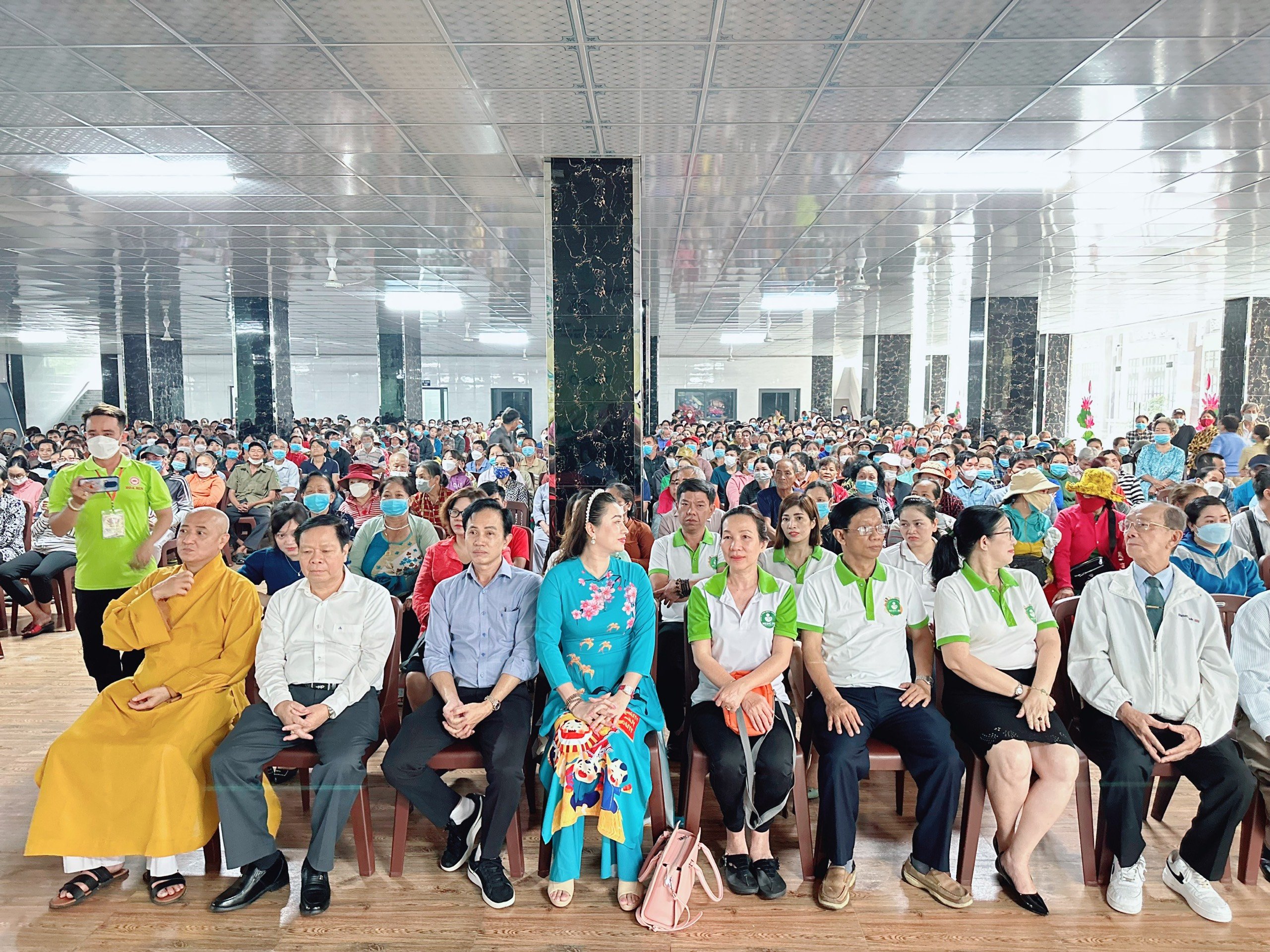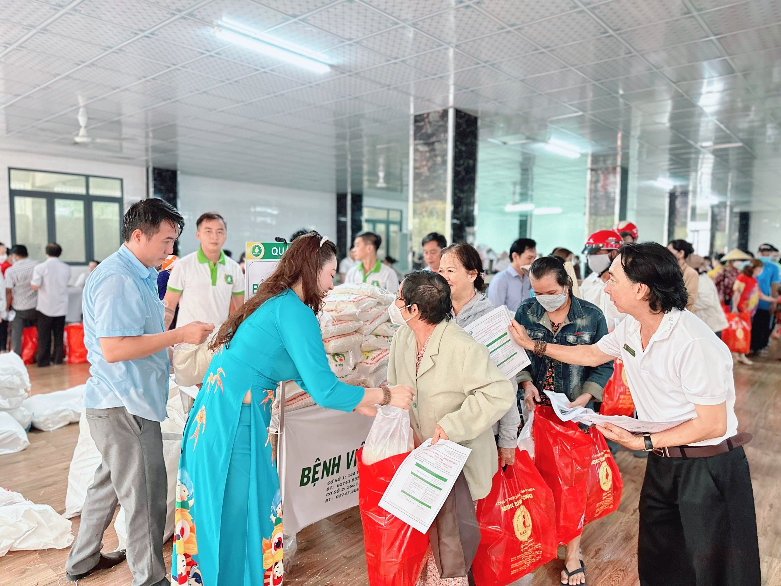 Buổi trao quà có sự hiện diện của: HT. Thích Huệ Thông – Phó Chủ tịch HĐTS, Trưởng ban Pháp chế Trung ương, Trưởng ban Trị sự GHPGVN tỉnh Bình Dương. Ông Trần Đức Thịnh – Phó Giám đốc Sở Nội vụ, Trưởng ban Tôn giáo tỉnh Bình Dương; Ông Nguyễn Huỳnh Đình – Phó Chủ tịch Ủy ban MTTQ Việt Nam tỉnh Bình Dương và gần 100 đội ngũ y bác sĩ, cán bộ, nhân viên các phòng thuộc Bệnh viện và hơn 1.000 bà con Phật tử đồng tham dự.