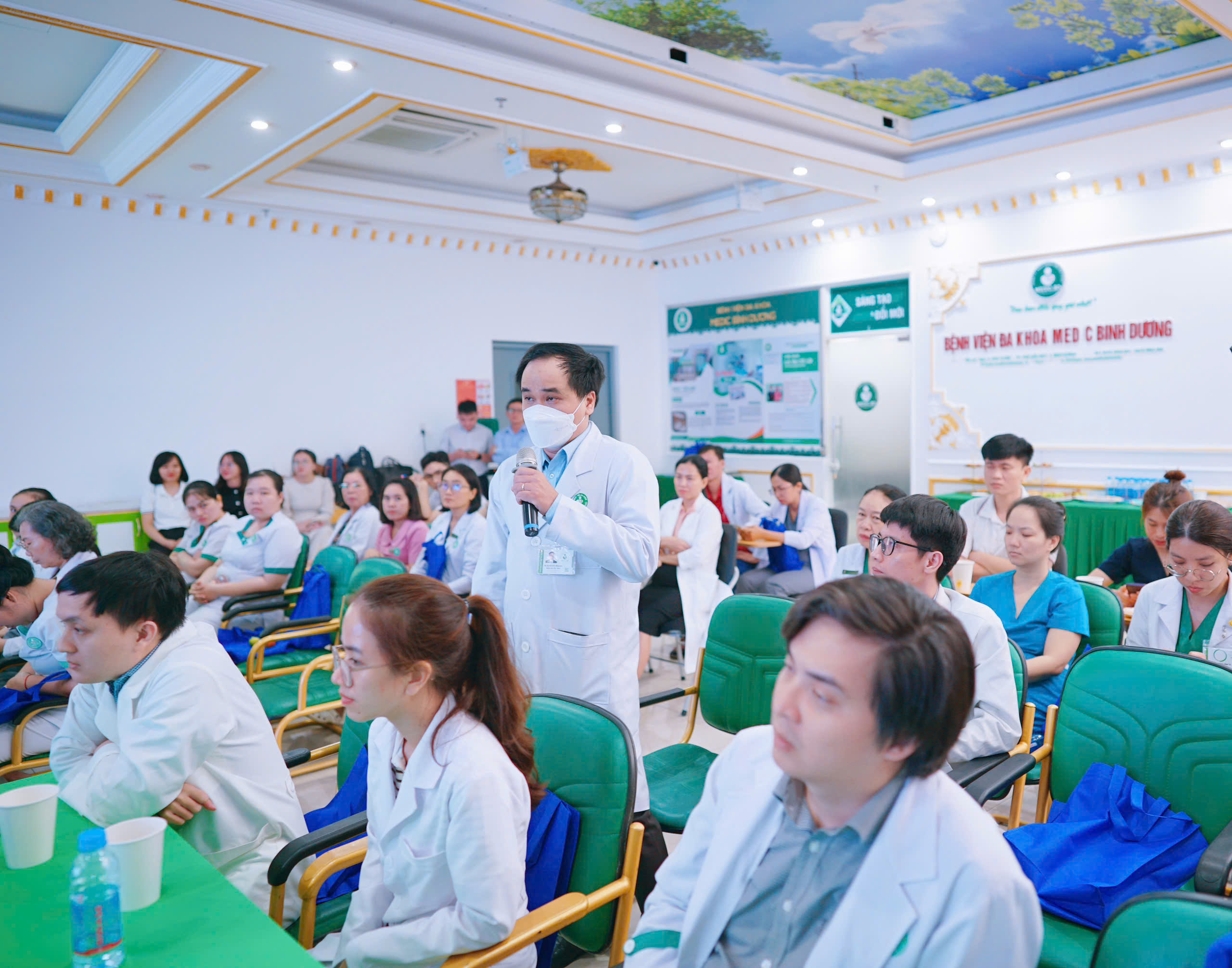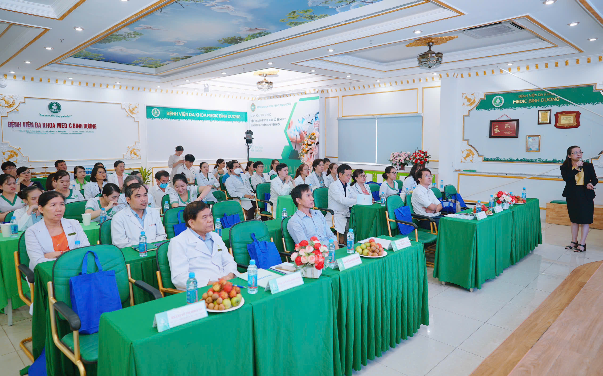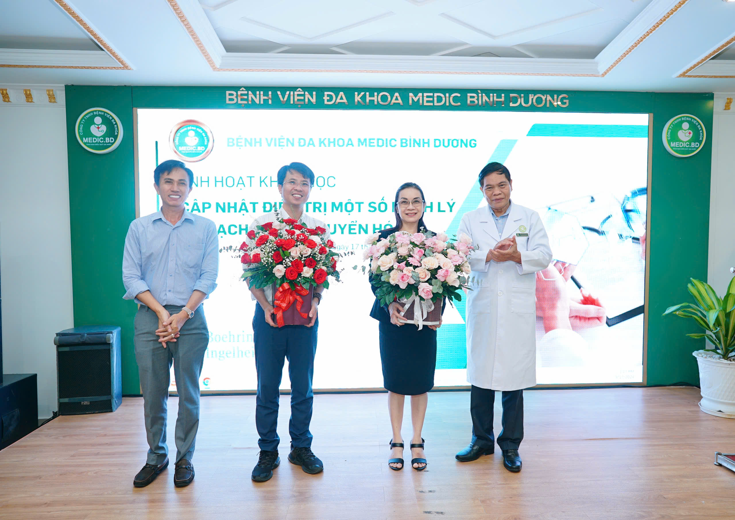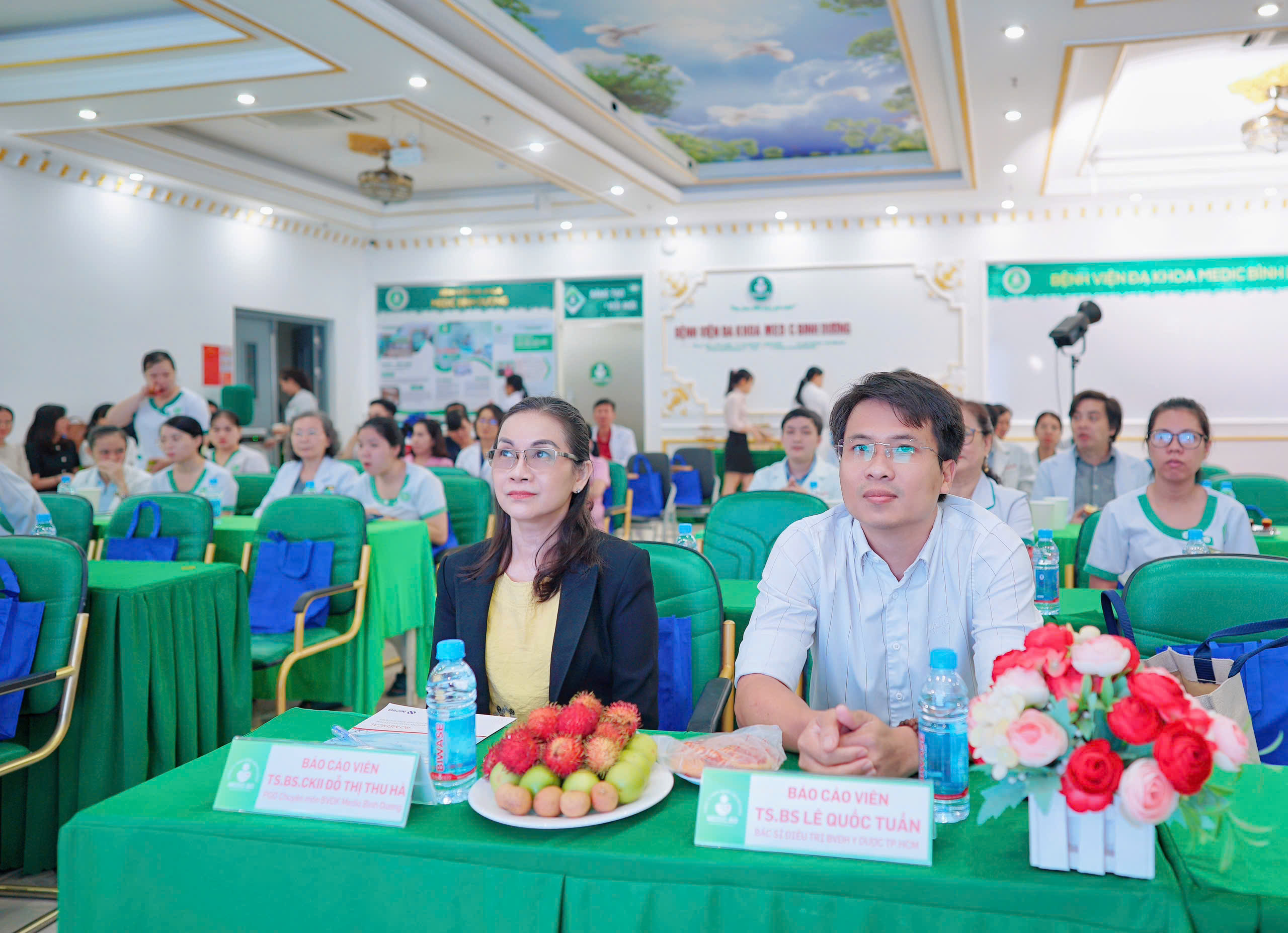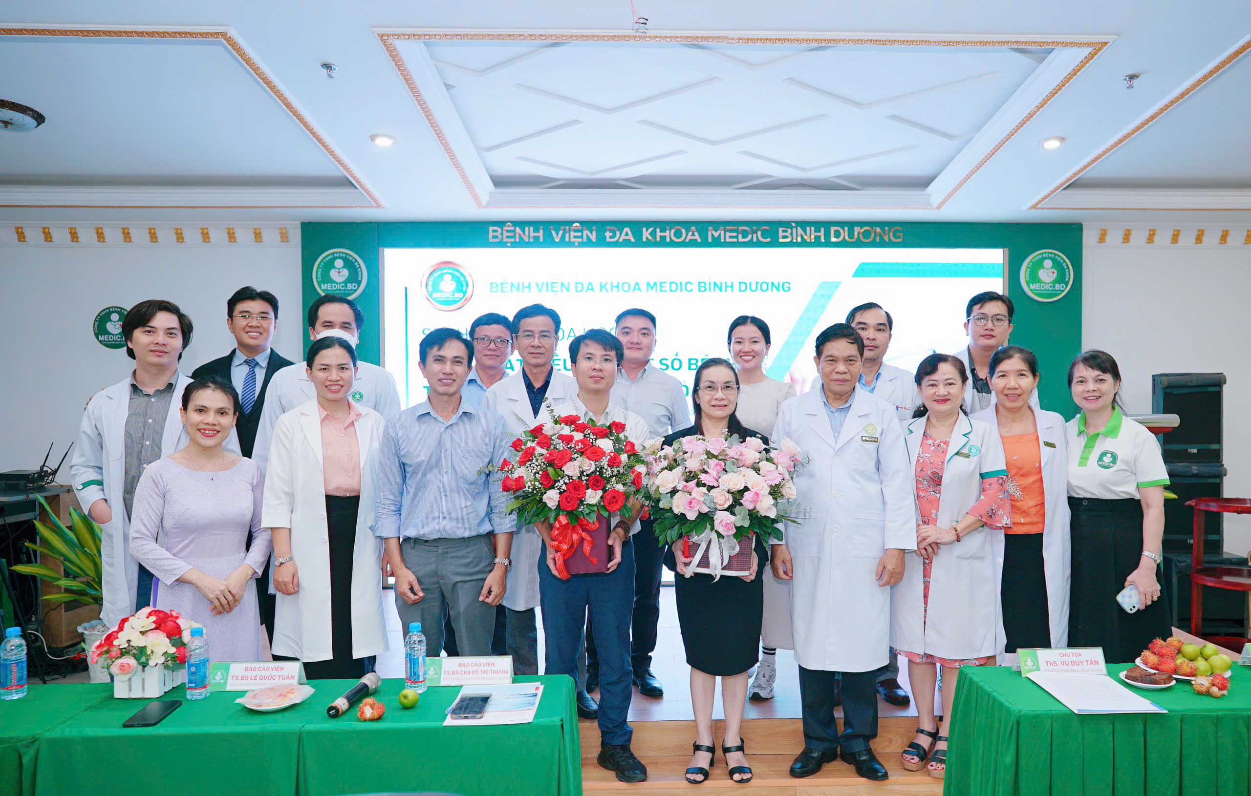 Chủ trì hội thảo Ông: VŨ DUY TÂN (Chủ tịch HĐQT BV đa khoa Medic Bình Dương), báo cáo viên gồm TS.BS LÊ QUỐC TUẤN (BV ĐHYD) và TS.BS.CKII ĐỖ THỊ THU HÀ (PGĐ chuyên môn BV Medic Bình Dương).