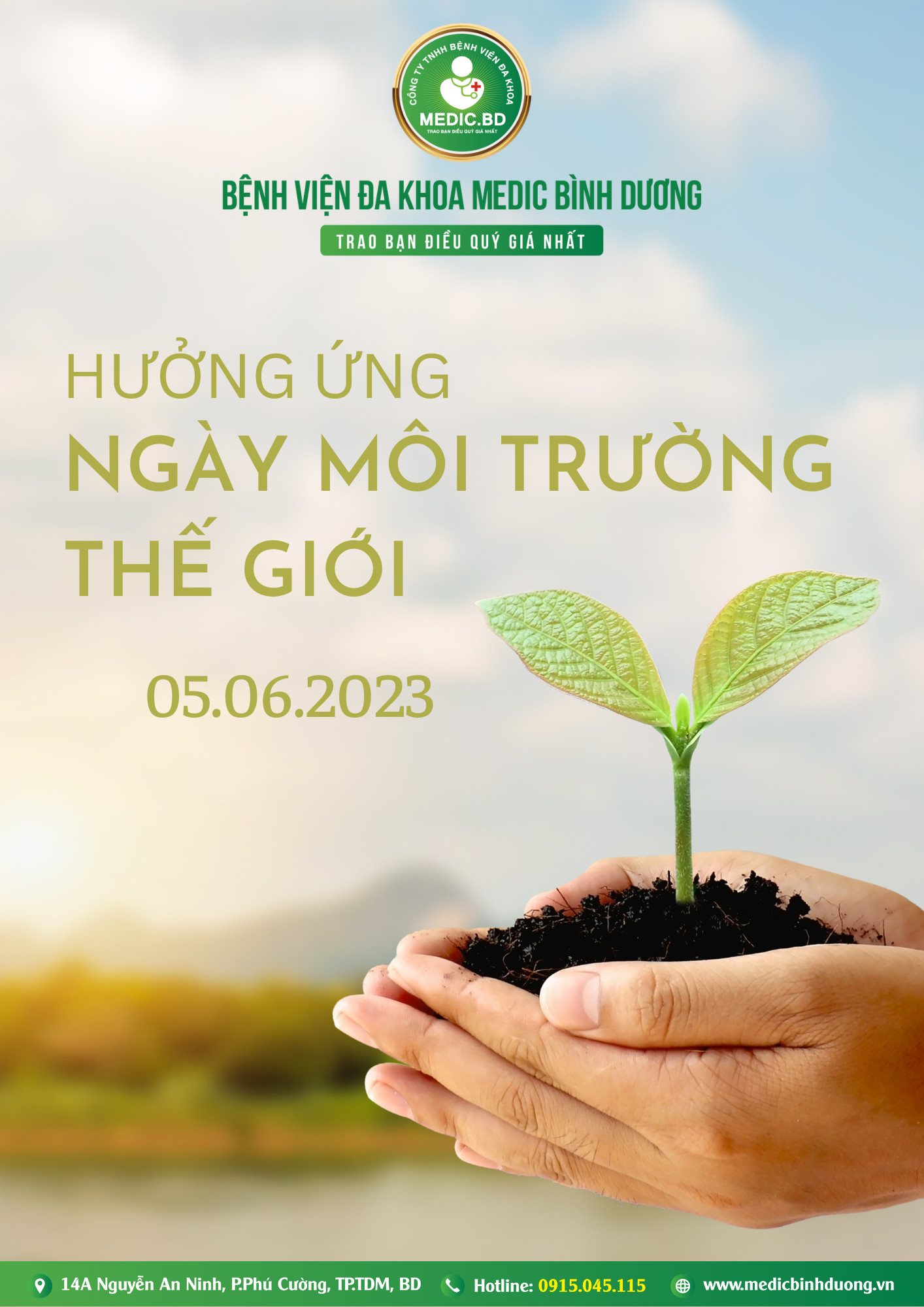Ngày Môi trường Thế giới được tổ chức vào ngày 5 tháng 6 hàng năm, nhằm nâng cao nhận thức của mọi người về tình trạng ô nhiễm môi trường và tác động của nó đến sức khỏe con người. Bệnh viện đa khoa Medic Bình Dương đã hưởng ứng Ngày Môi trường Thế giới bằng việc tổ chức nhiều hoạt động nhằm tăng cường nhận thức về tầm quan trọng của việc bảo vệ môi trường đối với sức khỏe con người.