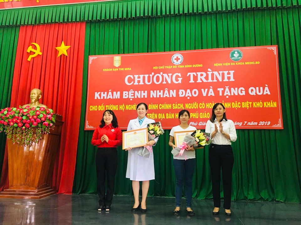 Bệnh viện Medic Bình Dương kết hợp với Hội chữ thập đỏ tỉnh Bình Dương và khách sạn The Mira khám bệnh miễn phí và tặng quà cho đối tượng hộ nghèo, gia đình chính sách và người có hoàn cảnh đặc biệt khó khăn trên địa bàn huyện Phú Giáo, tỉnh Bình Dương.