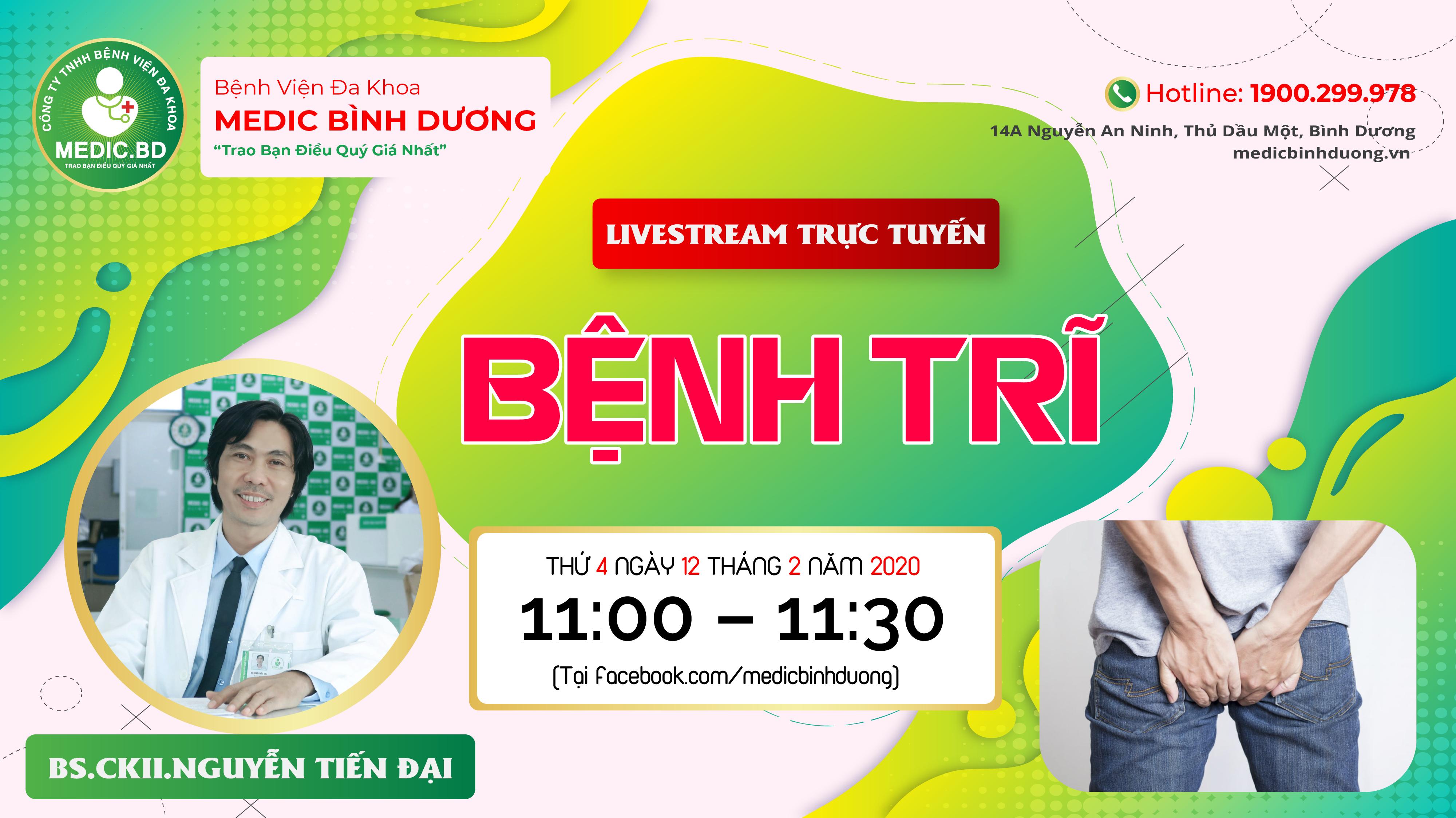 Vào lúc 11h00 - 11h30, thứ 4 ngày 12/02/2020 trực tiếp trên fanpage : facebook.com/medicbinhduong.
