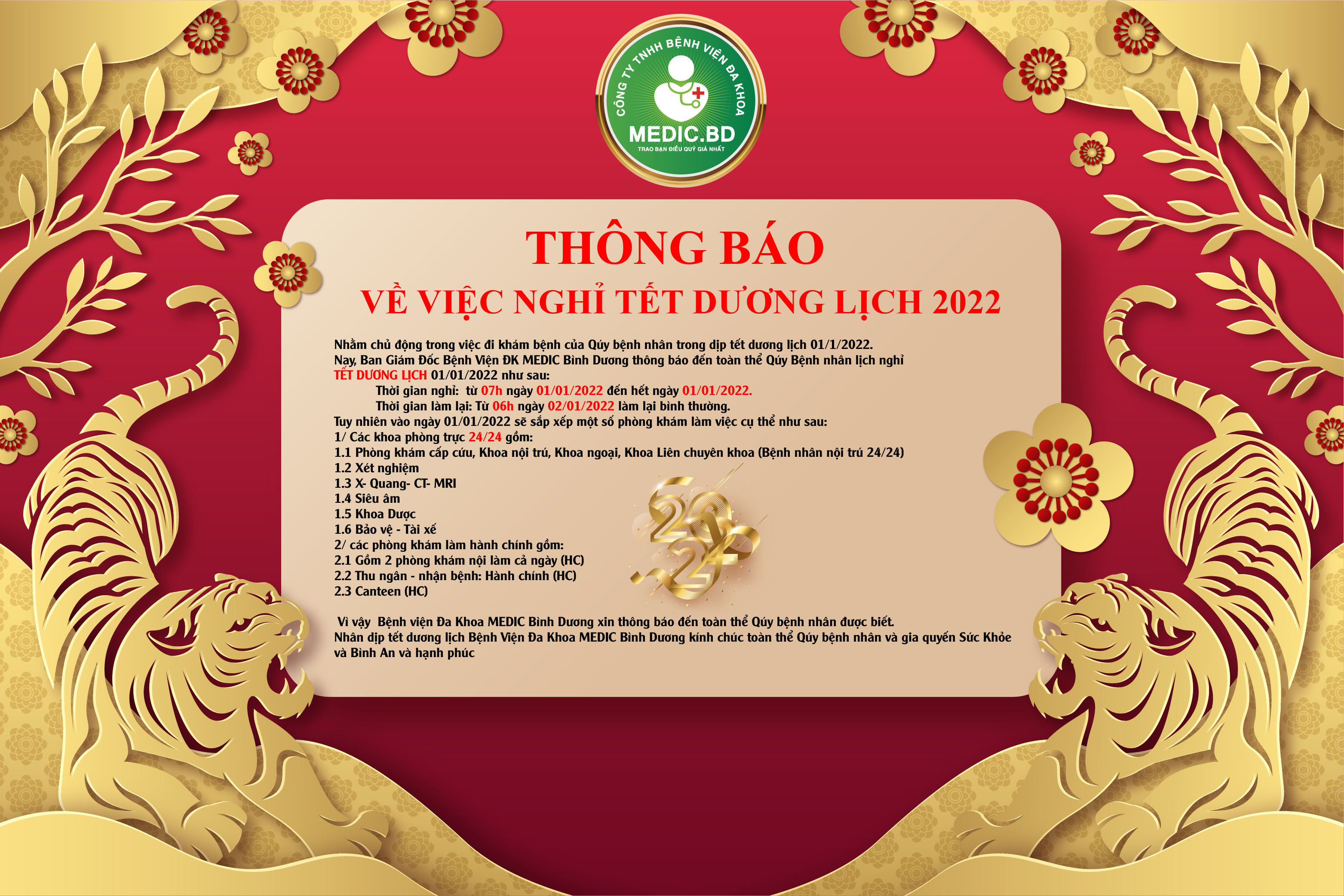 Bệnh viện đa khoa Medic Bình Dương xin trân trọng thông báo đến người bệnh và gia đình người bệnh lịch nghỉ khám bệnh