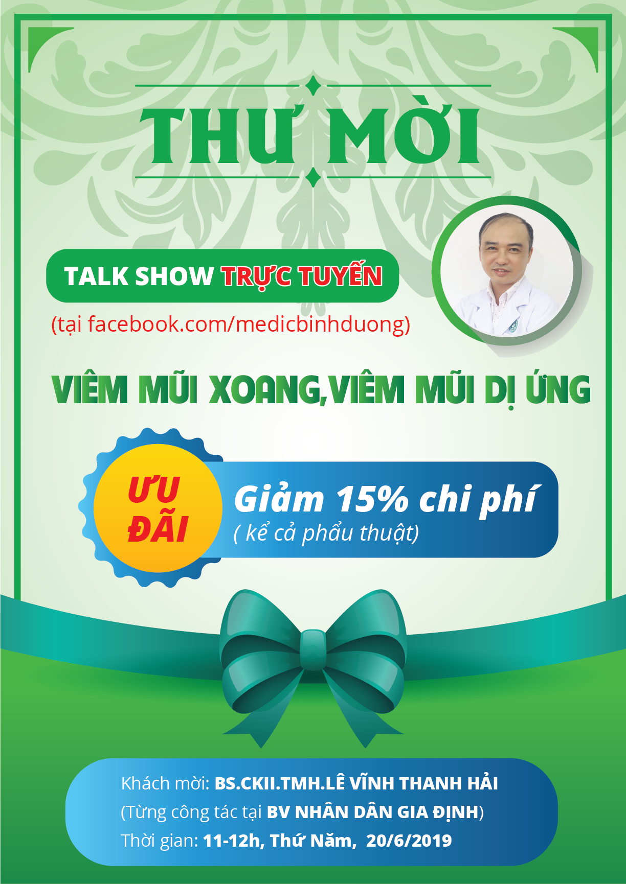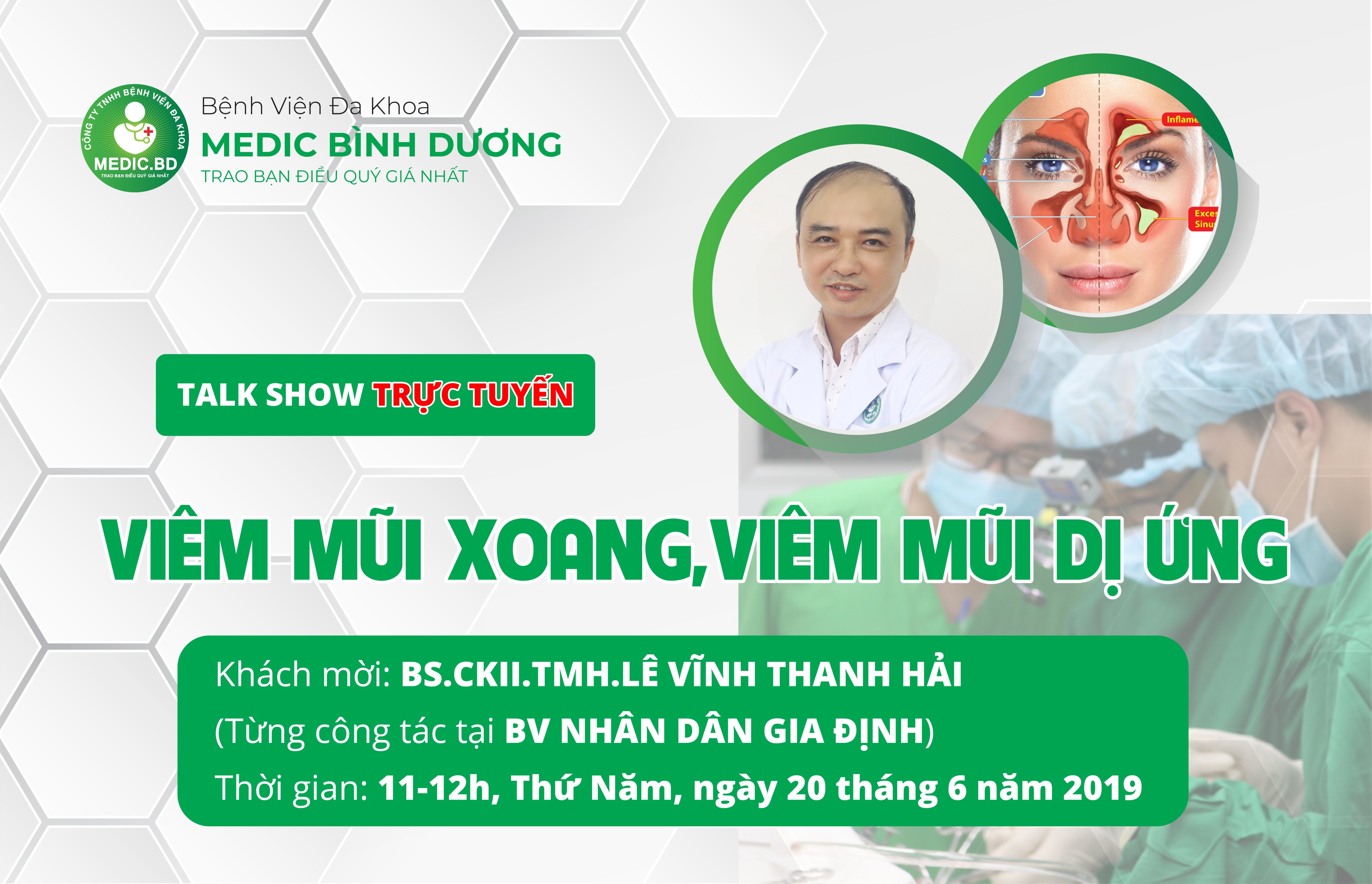 Ngày 20/06/2019, vào lúc 11h - 12h, Bệnh viện Medic tổ chức buổi livestream về bệnh lý viêm xoang - viêm mũi dị ứng do Bác sĩ CKII Lê Vĩnh Thanh Hải chia sẻ.