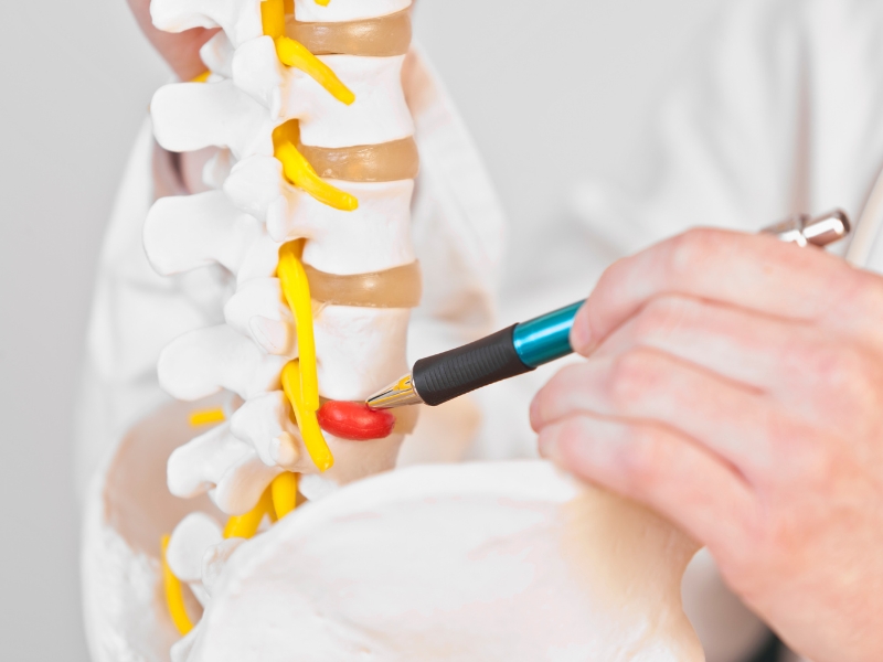 Các đĩa đệm và đốt sống xen kẽ nhau tạo nên cột sống. Đĩa đệm giúp cột sống linh hoạt bằng cách giảm áp lực. Phần nhân nhầy của đĩa đệm lưng bị thoát ra, ép vào rễ dây thần kinh, gây đau. Tình trạng thoát vị nhiều có thể dẫn đến chèn ép tủy sống, gây ra các biểu hiện nghiêm trọng như khó đi tiêu, yếu liệt chân và mất cảm giác.