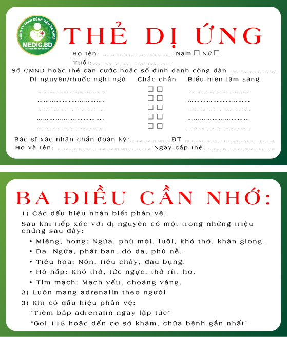 Hãy sử dụng thẻ dị ứng để đồng hành cùng nhân viên y tế trong việc kiểm soát các phản ứng dị ứng của thuốc có thể gây ra trong quá trình sử dụng...!!!