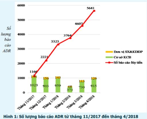 Theo đó, kể từ 11/2017 đến hết 4/2018 trung tâm đã tiếp nhận 5641 báo cáo ADR, chiếm 58,2% tổng số báo cáo năm 2017.