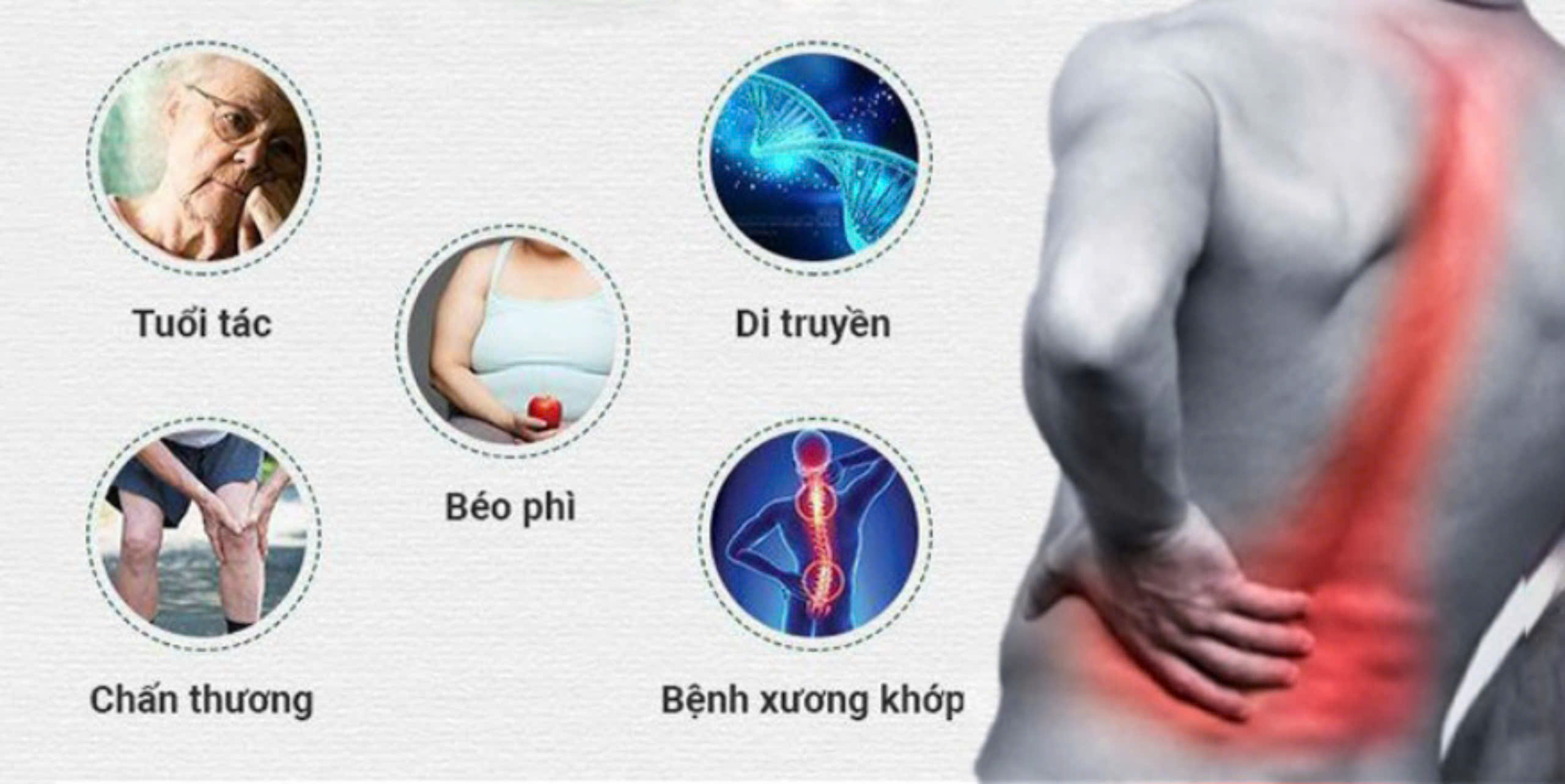 - Thoái hóa cột sống: Đây là nguyên nhân chính dẫn đến gai đốt sống. Thoái hóa cột sống khiến sụn khớp bị bào mòn và dễ nứt vỡ. Khi cơ thể phát hiện sự bất thường này, quá trình "bồi đắp canxi" sẽ được kích hoạt. Tuy nhiên, quá trình này thường diễn ra không đồng đều, dẫn đến tình trạng thiếu và thừa canxi. Các vùng thiếu canxi sẽ hình thành hõm xương, trong khi các vùng thừa canxi sẽ trở nên gồ ghề, lâu ngày tạo thành gai xương.