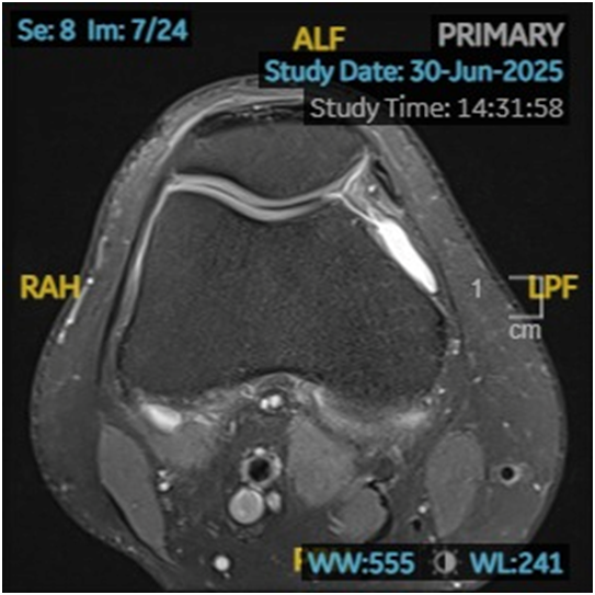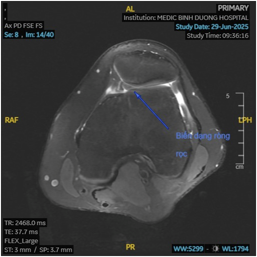 Trường hợp của em đi khám sau chấn thương . Kết quả là đứt hoàn toàn dây chằng chéo trước, rách ngang sụn chêm ngoài, loạn sản ròng rọc xương đùi.
