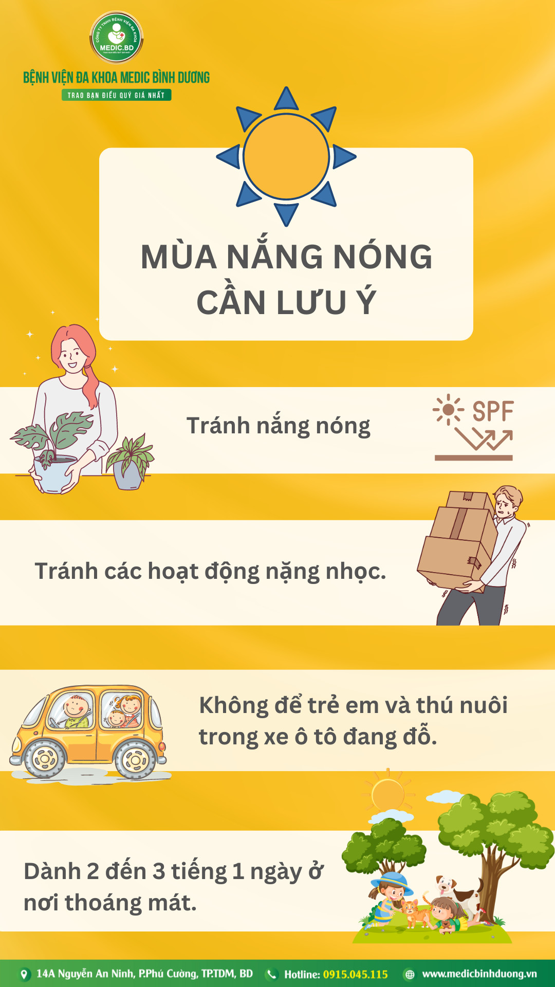 Chăm Sóc Đặc Biệt Cho Người Cao Tuổi Và Trẻ Em: Người già và trẻ em có nguy cơ cao hơn trong mùa nắng nóng. Hãy đảm bảo họ được mặc đồ thoáng mát, uống đủ nước và tránh ra nắng quá lâu.