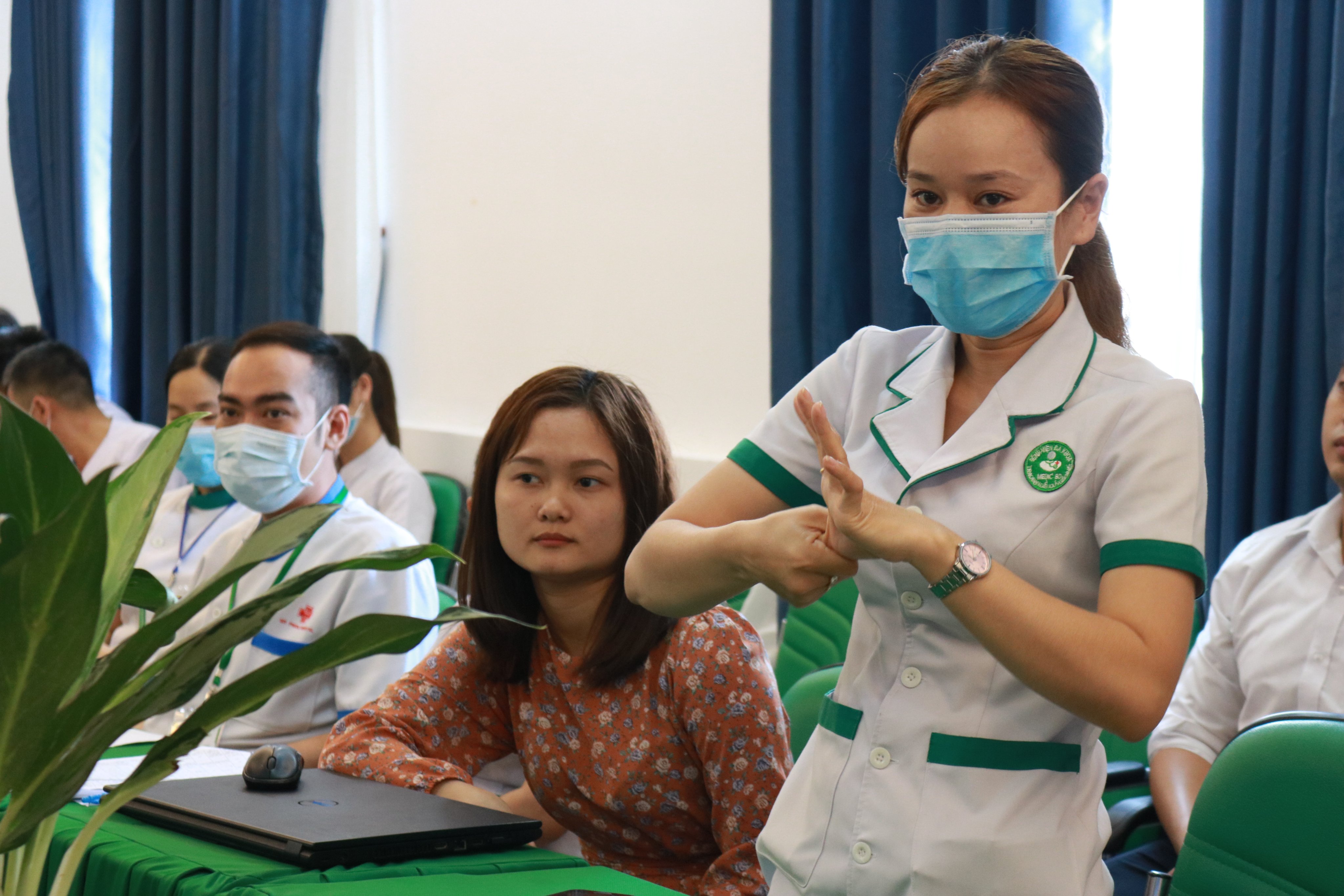 TẬP HUẤN VỆ SINH TAY, ĐEO KHẨU TRANG ĐÚNG CÁCH TẠI BỆNH VIỆN ĐA KHOA MEDIC BÌNH DƯƠNG