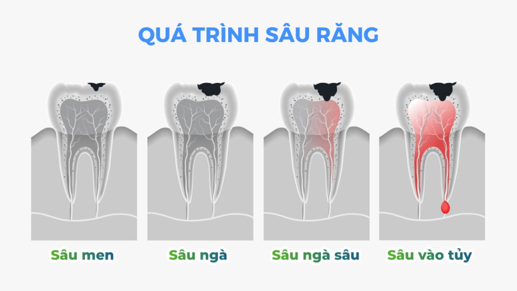 - Tủy răng bị nhiễm trùng do sâu răng ăn sâu.