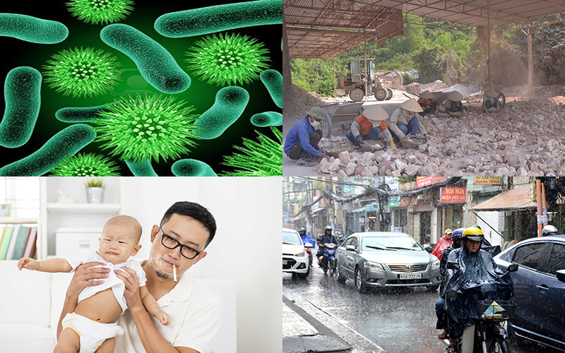 Một số trường hợp nhiễm trùng đường hô hấp dưới xuất phát từ các chất trong môi trường gây kích ứng hoặc gây viêm đường thở như: