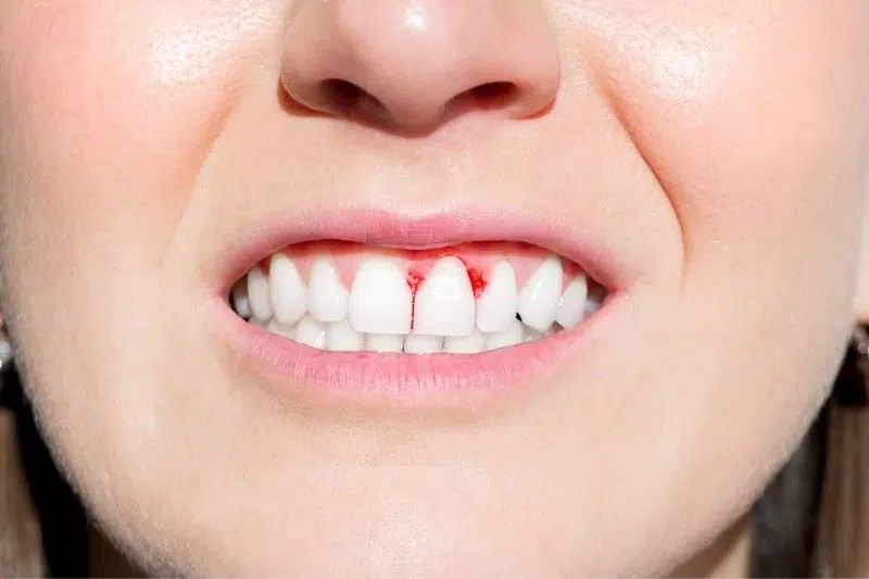 - Nướu dễ chảy máu khi đánh răng hoặc xỉa răng.