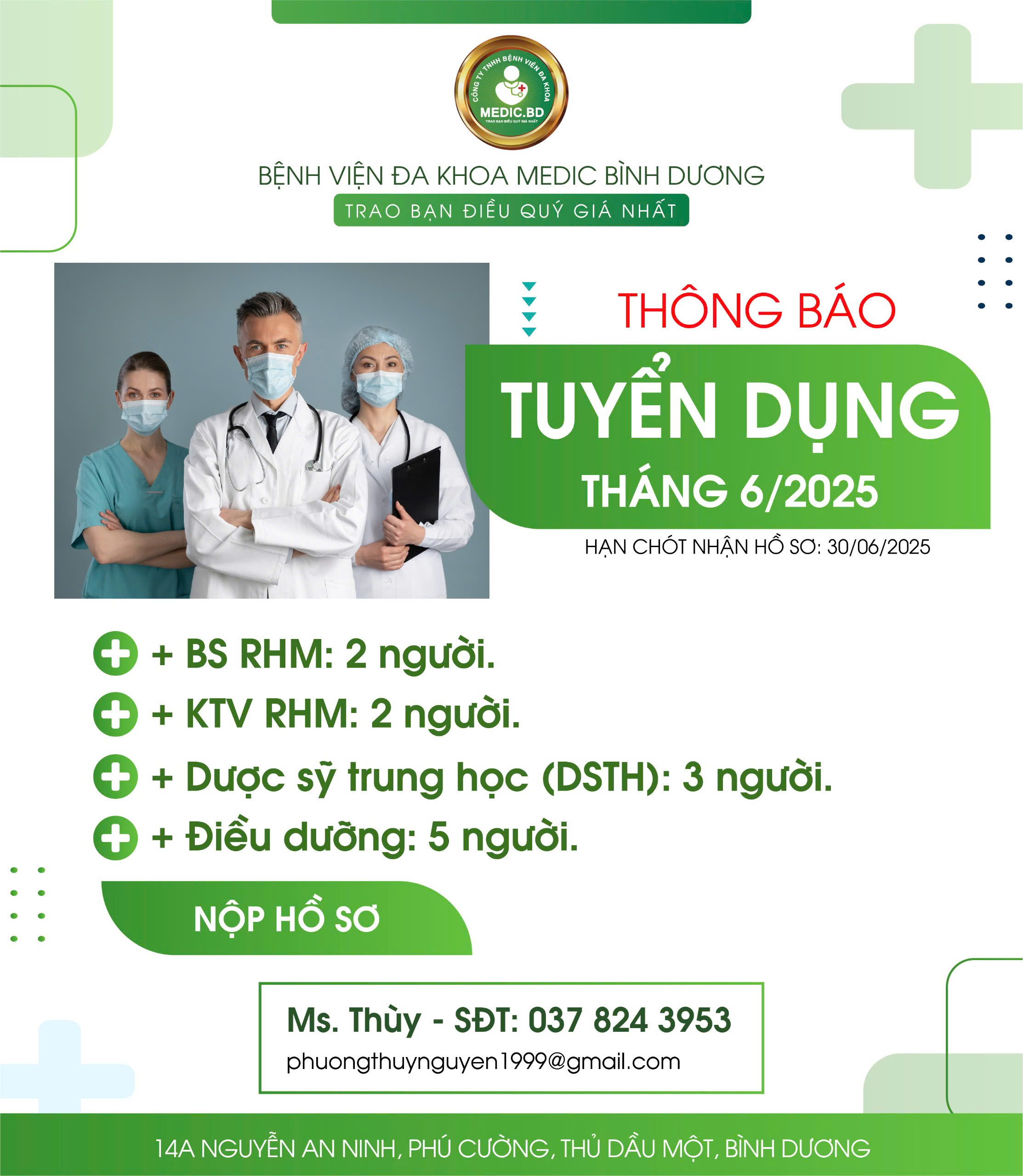 Bên cạnh chuyên môn, Medic Bình Dương rất mong muốn hợp tác với bạn, con người có TÂM thiện lành, muốn giúp người khác, làm việc 100% và chịu trách nhiệm 100%.